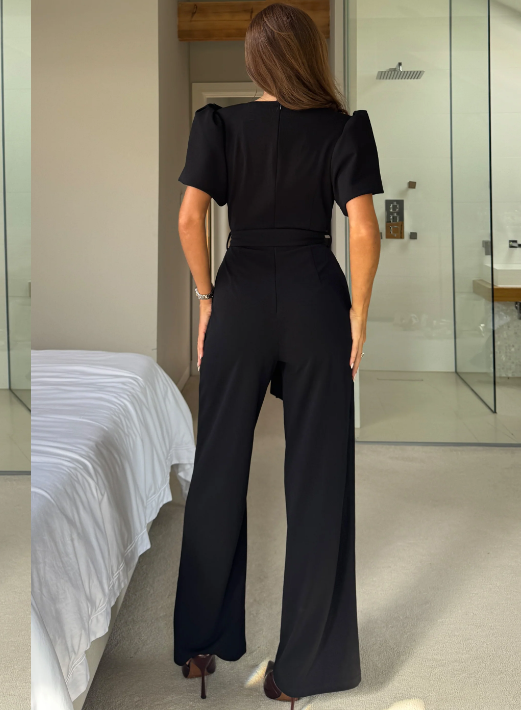 Drew Wrap Neck Puff Sleeve Jumpsuit Black