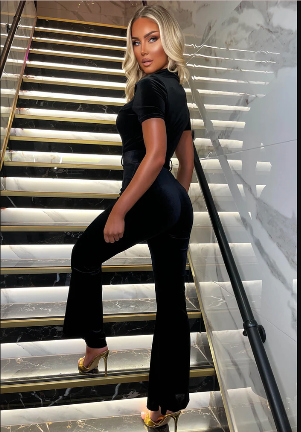 Mia Black Zip Front Velvet Jumpsuit